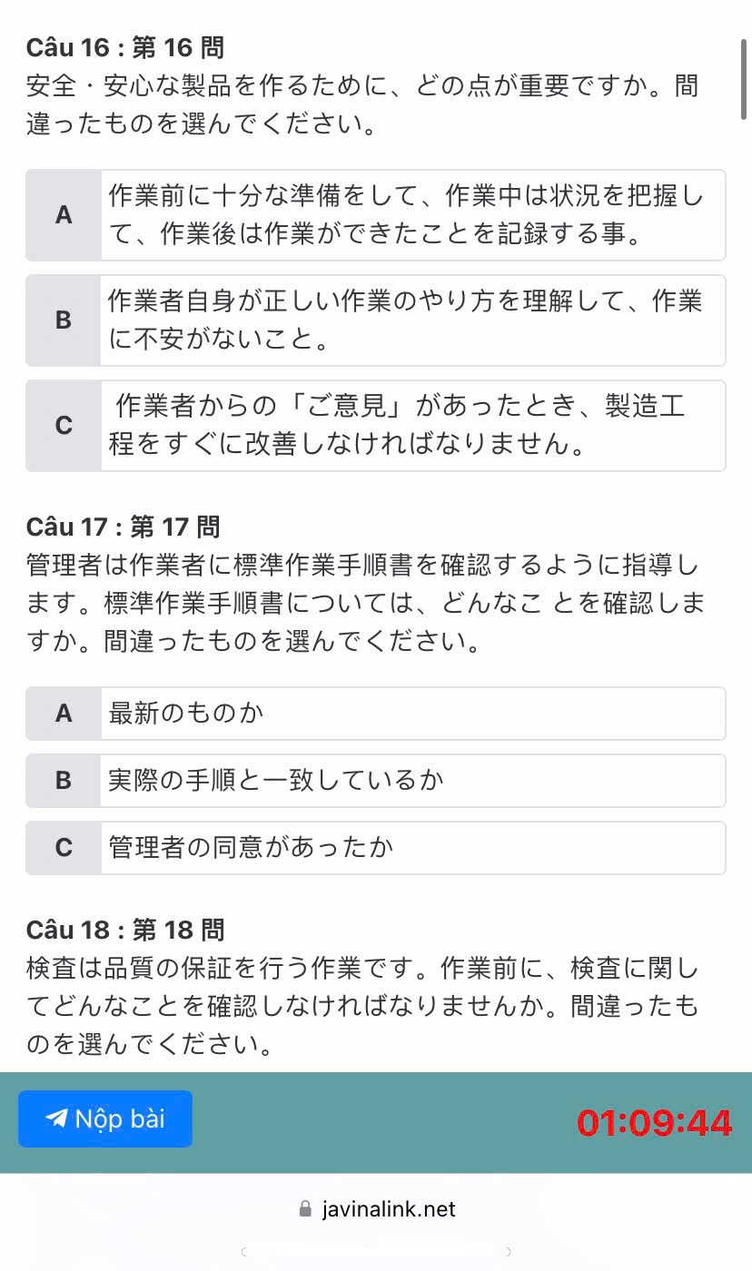 Bộ câu hỏi được trung tâm biên soạn dựa trên giáo trình và tài liệu chuẩn của kỳ thi Tokutei Gino 2 CBTP, giúp bạn: