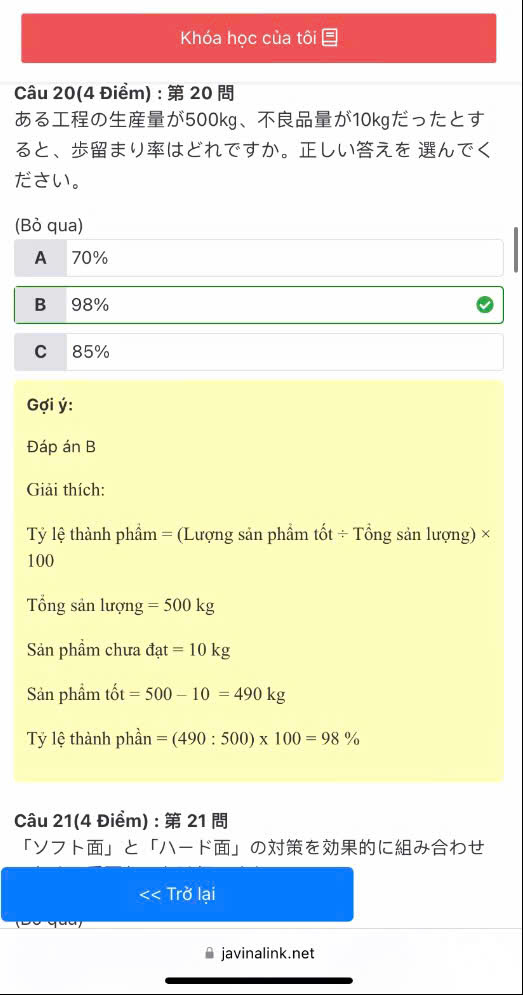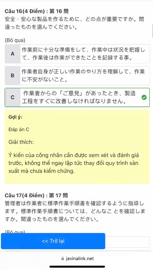 Hiển thị đáp án đúng – sai chi tiết giúp bạn hiểu sâu từng câu hỏi
